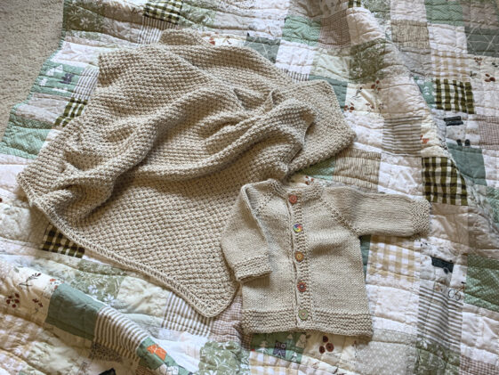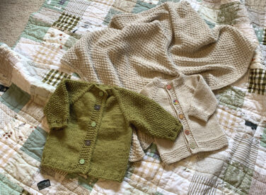 Hier zeige ich euch eine Babydecke mit passender Jacke aus einem Garn mit 75 % Baumwolle und 25 % Leinen. Die Wolle ist super soft und fühlt sich toll an. Natürlich ist sie durch den hohen Baumwollanteil nicht so wuschelig wie Merinowolle und wärmt vielleicht nicht so gut. Für die blaue Jacke habe ich eine Kombination aus 60 % Baumwolle und 40 % Polyacryl verwendet und bin mehr als zufrieden, fühlt sich toll an, weich, aber auch stabil wie ‚echte‘ Wolle. Hab mir direkt mehr davon gekauft, um mir eine Jacke zu stricken