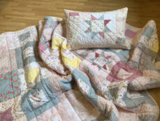 Der kleine Quilt hier ist ca 1,20 x 1,38 m, damit kann sie sich ohne Probleme die ersten Jahre einkuscheln. Als Zugabe gibt es ein passendes kleines Kissen. Auf der Rückseite ist wieder ein kuscheliges Wellnessfleece in rosa.