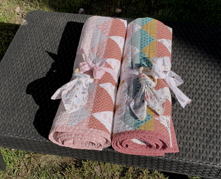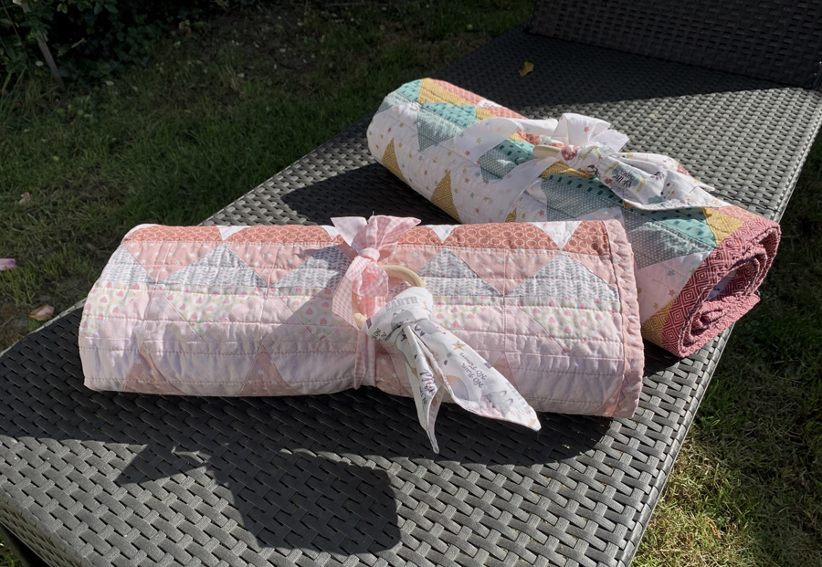 Ich mag beide Quilts voll gerne, das Muster ist echt so süß und macht so Spaß zu nähen. Ich hoffe die Eltern werden die Decken genauso schön finden.🎈