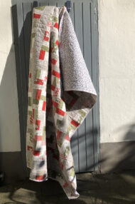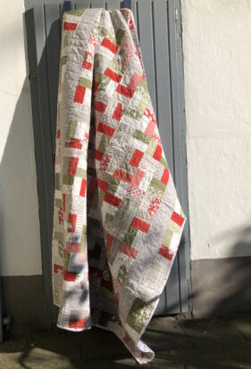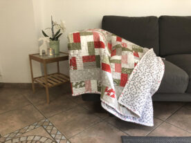 Wie schon gesagt, wenig Schnickschnack, ein einfaches Patchworkmuster mit einem Border in grau mit Schneeflocken. Mir gefällt es, ist jetzt nichts mit dem absoluten Wow- Effekt, aber ich mag die Farben und Muster.