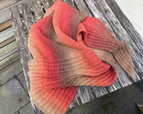 Ich hab da was vergessen zu zeigen. Dieses Tuch habe ich schon im März in unserem Urlaub gestrickt und danach schön weggepackt, weil ich es erst Anfang Juni meiner Tochter zum Geburtstag schenken wollte. Aber das hab ich total verpennt und es fiel mir erst vor ein paar Tagen ein, dass es noch irgendwo sein muss ![]()