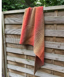 Mittlerweile ist es verschenkt und ich habe auch ein paar Fotos gemacht. Das Muster ist das gleiche, wie bei Leonis Tuch, nur diesmal in orange/braun.