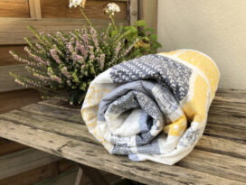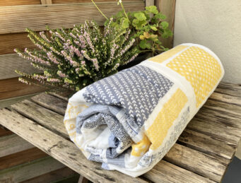 Anthrazit, creme farbene Wolldecke, Kissen in gelb, curry und grau, puuh, das war echt so schwer.