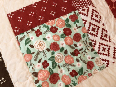 Gequiltet hab ich Wellenlinien, diagonal entlang der Nähte und auch das Binding erhielt eine Ziernaht auf der Vorderseite.