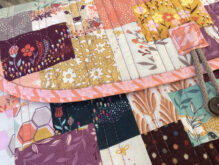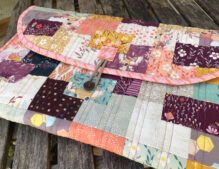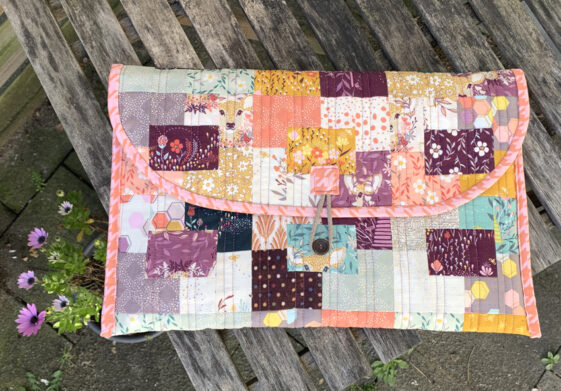 Ich hab ein Charm Pack und einige Reste aus einem anderen Paket verbraucht. Nur der Knopf muss noch gegen ein schöneres größeres Exemplar ausgetauscht werden.