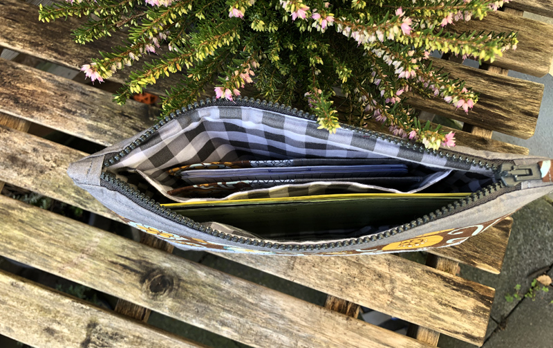 Meine große Tochter hat eine gequiltete Zipper-Mappe für die Leistungskarte unserer Junghündin Jou bekommen. Außen hab ich den Namen appliziert und innen gibt es ein kleines Extrafach für den Impfausweis.