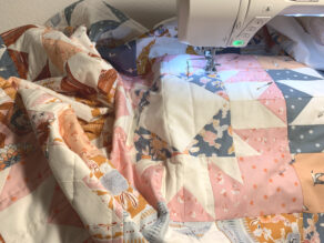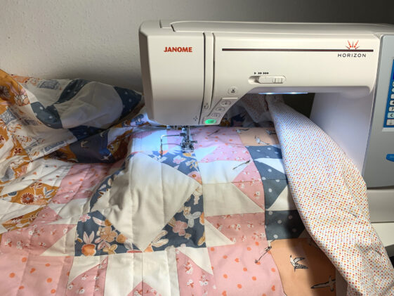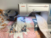 Gequiltet hab ich senkrechte gerade Linien, auch das war eine Premiere für mich, denn ich hab mit dem Abstandshalter ziemlich gute gerade Nähte zustande gebracht.