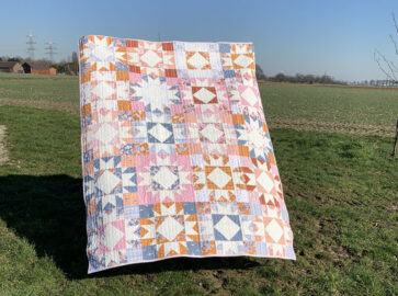 Die Pattern heißt Agnes (#agnesquilt) und die Freundin meines Sohnes hatte sich dieses Muster und die Stoffe ausgesucht. Zunächst hab ich ganz schön geflucht, weil es so viel zu schneiden, bügeln, schneiden und wieder zu bügeln gibt. Aber das Gesamtbild hat mich überzeugt. Ich finde sie mittlerweile sooo schön