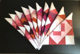 Die Rückseite ist in altrosa mit einem Streifen bunter Reste.