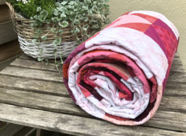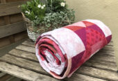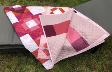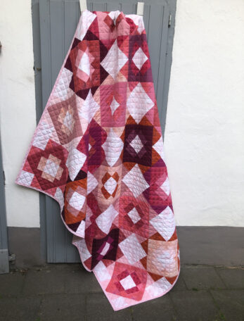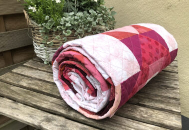 Ihr könnt den Quilt im Garten oder zum Picknick genauso nutzen, wie vielleicht im Wohnzimmer oder auf dem Bett. Der sieht überall toll aus.