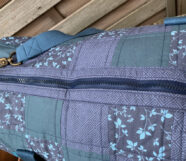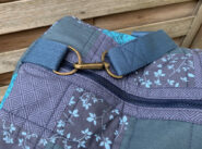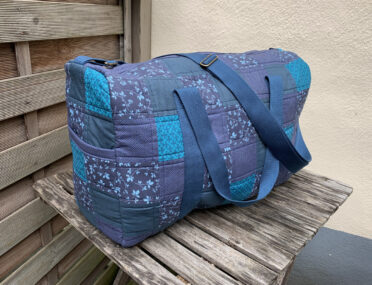 Dies ist meine zweite Tasche nach dem Patchwork Duffle Schnittmuster. Jana wollte unbedingt etwas in blau, leider sah unsere erste Farb-Variante ziemlich grauenvoll aus, so dass ich die unfertigen Teile monatelang im Schrank liegen hatte. Dann beschloss ich neue Stoffe zu kaufen und den Rest aufzutrennen, um wenigstens das Vlies und die blauen Gurtbänder verwenden zu können. Irgendwie ist es schwer mit blau, finde ich zumindest, unterschiedliche Blautöne harmonieren nur sehr schlecht miteinander. So passt auch das Gurtband farblich immer noch nicht so ganz. Aber im Großen und Ganzen bin ich recht zufrieden mit meiner neuen Version.