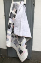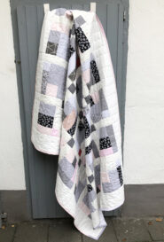 Die Pattern hab ich mir selbst zusammen gebastelt, was ganz gut geklappt hat. Genäht habe ich je 4 Blöcke mit 9 x 9 inch, und 6 Reihen. Das Sashing (Streifen zwischen den Blöcken) ist 2 ½ inch breit, der äußere Border 5 ½ inch.