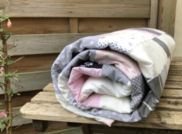 Lange drüber geredet und nun endlich hab ich was genäht für mein Bett, sogar wie ursprünglich geplant in den Farben grau/rosa.