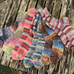 Ich fange mal an mit meiner Sockenparade, 6 Paar sind es geworden und jedes Paar hat ein individuelles Muster.