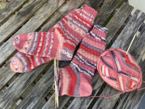 Seit meinem Urlaub im März hab ich tatsächlich schon 5 paar Socken gestrickt und das nächste ist schon in Arbeit ![]()