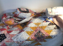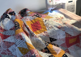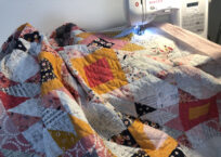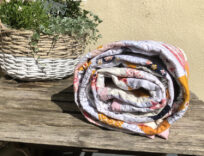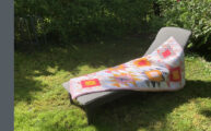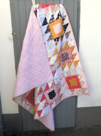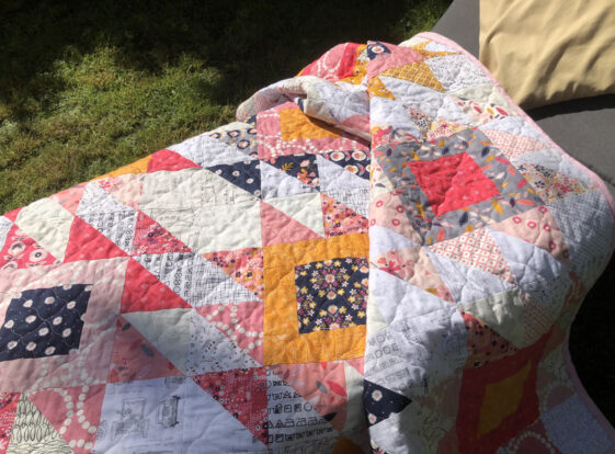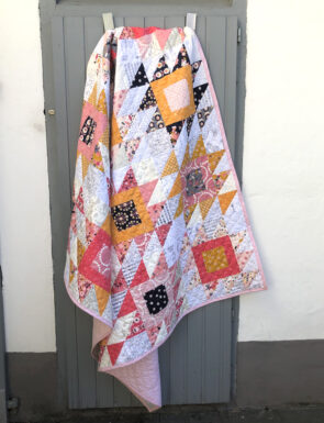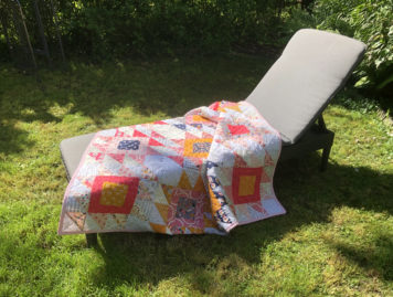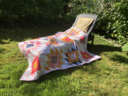 Aus den „Golden Aster“ Stoffen habe ich einen Sommer und Garten Quilt genäht. Ziemlich knallig geworden, die hellen Farben strahlen in der Sonne richtig.