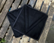 Als Aufhänger bekommen die Lappen hellbraune Lederbänder, die mit Nieten befestigt werden. Das Leder bestellt Töchterchen gerade online, damit ich nix falsch mache. Wenn wir sie komplett haben, mache ich neue Fotos. Aktuell gibt es also nur Bilder vom Rohprodukt.