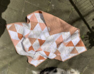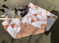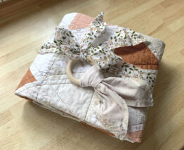 Wölkchen 26. April 202329. April 2023 Ich liebe diese Farben Ein kleiner Babyquilt für Marleen mit klassichem Triangle Muster, Die hellen Stoffe haben total niedliche Wölkchen und Mond und Sterne Motive, sooo cute. Kombiniert mit einigen unifabenen Stoffen in lachs/braun. Ella wollte auch mit drauf 🙂 Beitrags-Navigation Previous Post Previous Post: Krabbeldecke für JoschuaNext Post Next Post: Hundedecke für Lisa