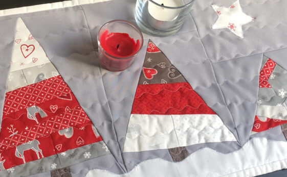 Genäht hatte ich ja schon vor ein paar Monaten, nun kann ich es offiziell auspacken und hier zeigen. Mein erstes Stück ist ein Tablerunner, mit wonky Weihnachtsbäumen im Schnee. Die Idee dazu stammt von Leah Day, sie zeigt ein komplettes Youtube Tutorial und bietet die Pattern als kostenloses PDF Dokument an.