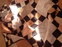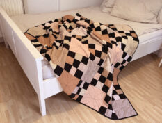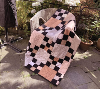 Dieser Quilt sollte meine neue Kuschelecke im Garten verschönern, ich hatte geplant meine Terasse ganz neu zu gestalten. Diese Pläne liegen nun erstmal auf Eis, denn wenn alles gut geht, werde ich demnächst umziehen und dann wird alles anders sein. Ich denke aber ich werde auch im neune Garten Verwendung finden für meinen „Garten Quilt“