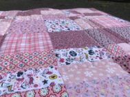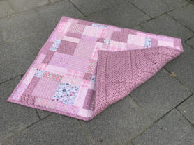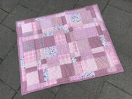 Und das ist dabei rausgekommen. Die Decke ist ca. 80 x 100 cm groß und gefüllt mit 3 Lagen Vlies, 2x Baumwollbatting und noch eine Lage Volumenvlies aus Poyester.