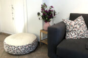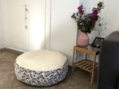 Das Kissen hat einen Durchmesser von ca. 80 cm und ist bei mir 25 cm hoch. Beim nächsten mal würde ich vielleicht sogar nur eine Höhe von 20 cm nähen.