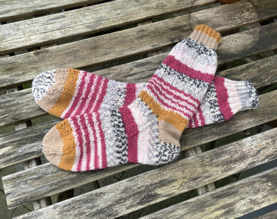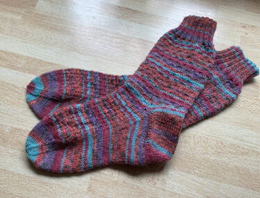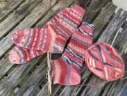 Leider hab ich nicht alle fotografiert. Ich hab mich mal an 3 unterschiedlichen Mustern probiert; Schüppchen, Charade und Minecraft. Verwendet habe ich Wolle von Opal, MEILENWEIT von Lana Grossa und ein Woll Butt Sockenwollpaket „Erdbeerfeld“.
