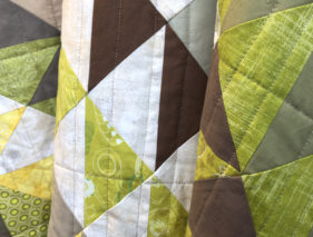 Als Batting hab ich ein ’no name‘ Angebot von Amazon verwendet, angeblich aus 100% Baumwolle, allerdings nur halb so teuer wie die Markenprodukte. Die Artikelbewertungen gingen weit auseinander, also warten wir ab, wie sich das Vlies unter Benutzung und Wäsche verhält.