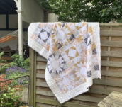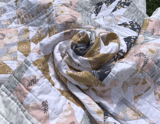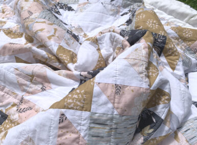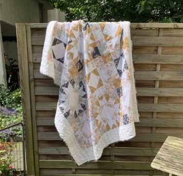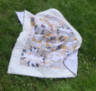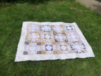 Dieses mal hab ich nur 3 x 4 Blöcke genäht, aber dafür gibt es einen breiten Border in weiß. Gequiltet habe ich, wie bei ersten Quilt senkrechte Linien und das gefällt mir richtig gut.